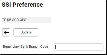 Click on the Beneficiary Bank Branch Code hyperlink to enter value. Click Update. |
