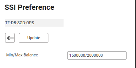 Min/Max Balance | This defines the minimum and maximum balance a user wishes to set for the SSI, with the currency matching the SSI Currency. It is used in the Dashboard – Cash Visibility 1426.