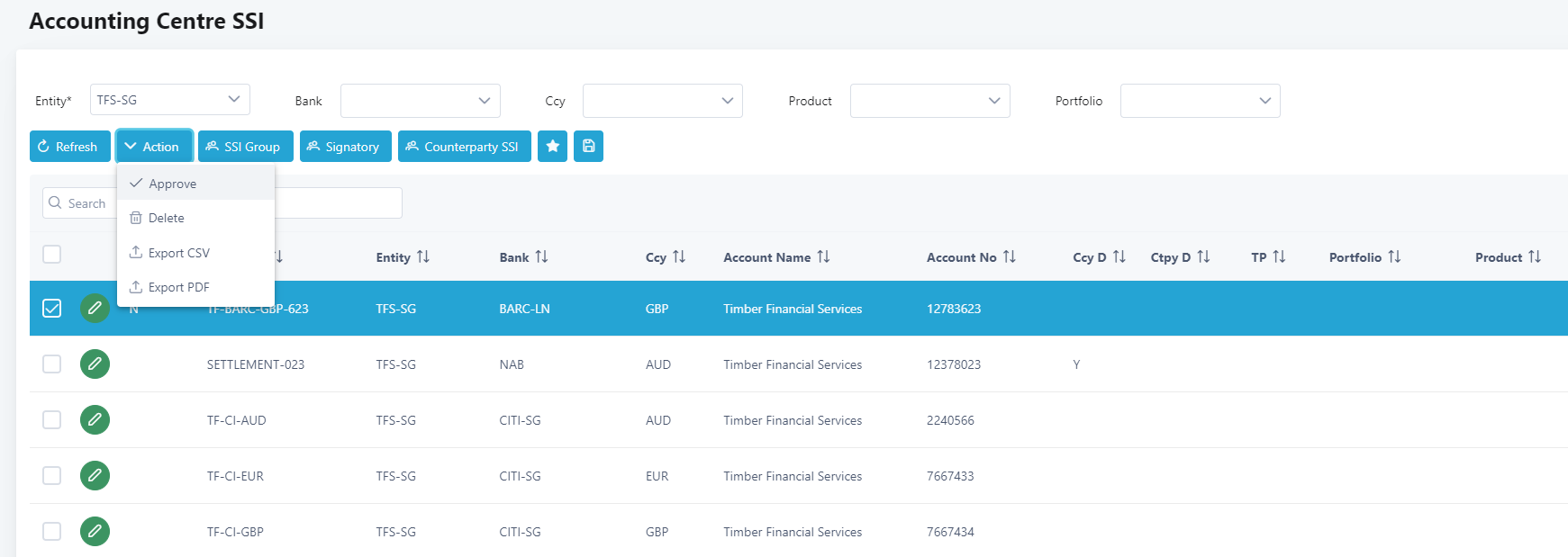 14. Click on Action and Approve. The settlement instructions are now set and approved.