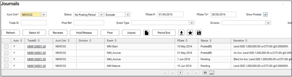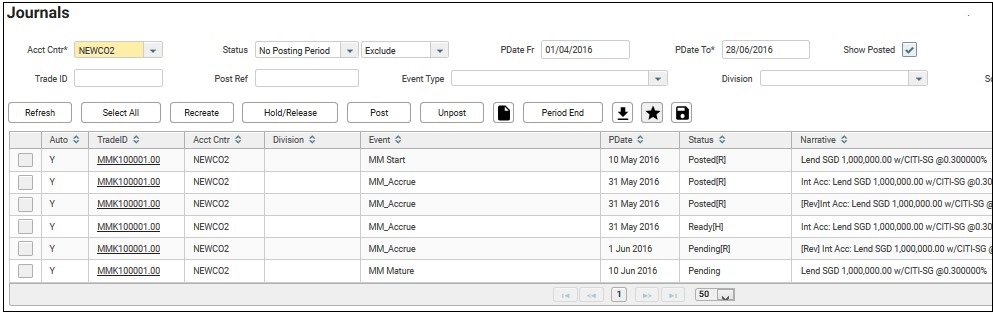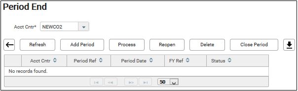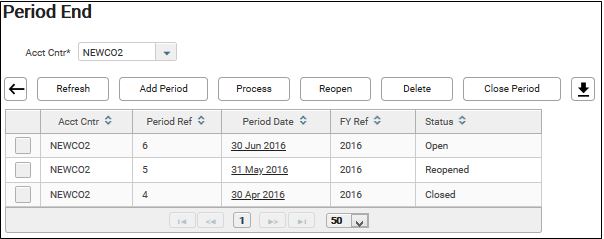 3. Click Refresh. You will see a list of accounting periods created in the listing. If the accounting centre is new, the list would be blank.