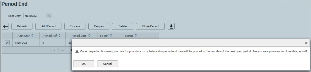 23. The status of the period will change to Closed. Once the period is closed, any amendment made to the existing transaction posted will be book to the next open period.
