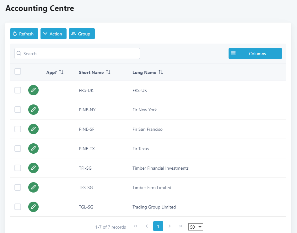 1. From the main menu, select Set Up > Static > Accounting Centre.