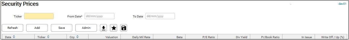 1. From the main menu, select Prices > Security Prices. The Security Prices main screen will be displayed.