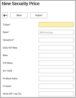 Adding and maintaining security prices is important as they are used by the system for investment valuation.