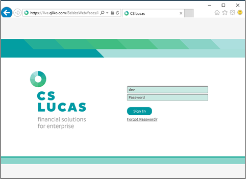 1. Open Internet Explorer, go to the CS Lucas system URL. In this example, https://live.qliko.com will be used.