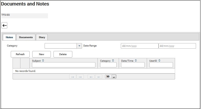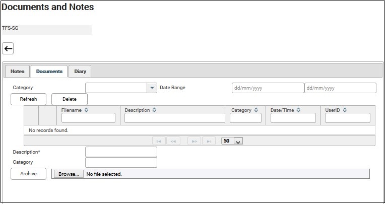 5. Document and Notes screen is displayed.