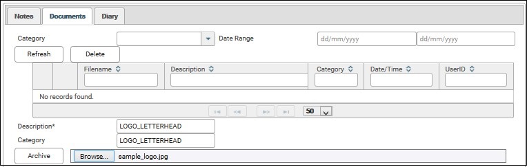 7. Type the Description, LOGO_LETTERHEAD. Fill in the Category field with the same name as Description.