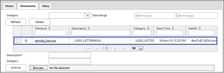 9. Click Archive. The file uploaded will appear on the upper part of the screen.