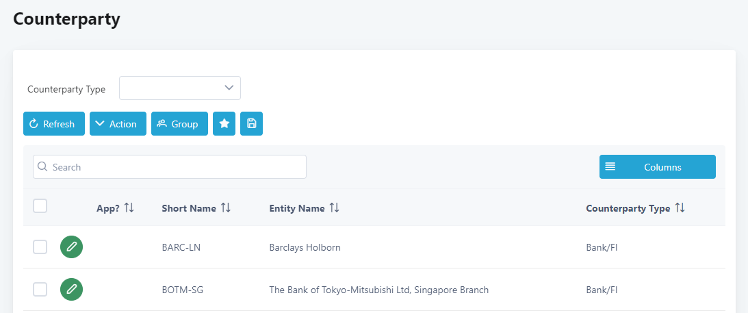 8. To amend the members’ assignment, click on the Edit button of the group from the Counterparty Group screen.