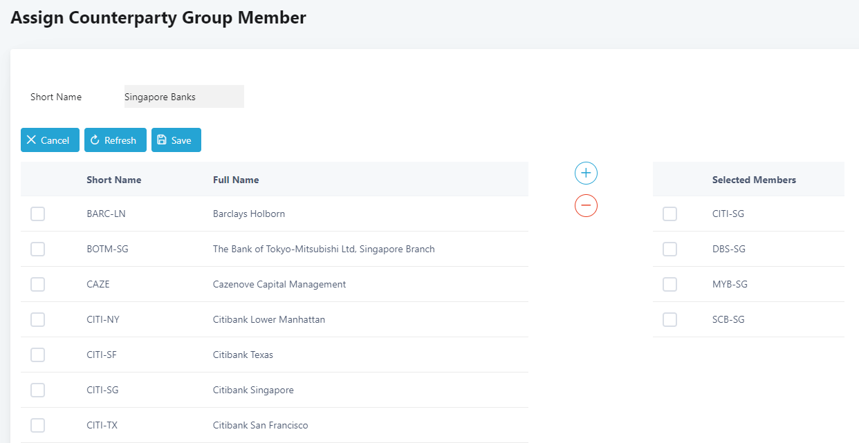 11. To add new counterparty to the group, tick the checkbox on the short name of the counterparty.