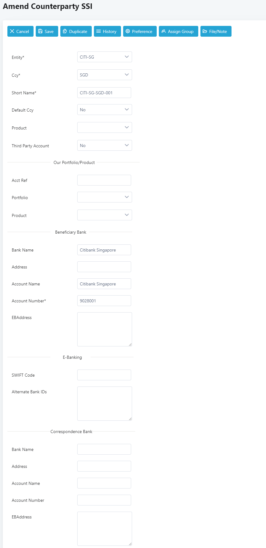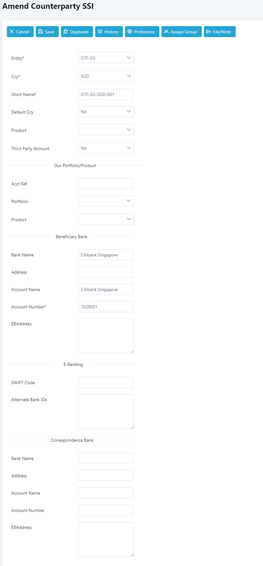 Amend Counterparty SSI