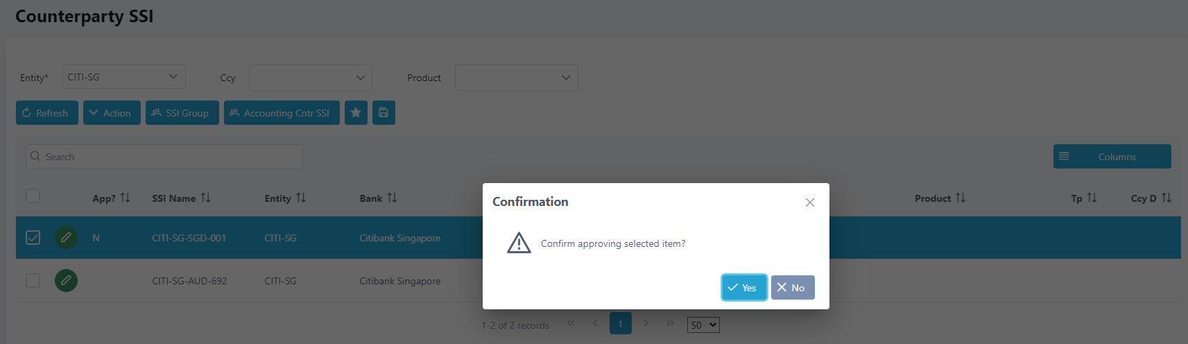 8. Approve the changes by clicking on the checkbox beside the SSI name.