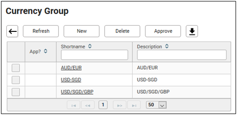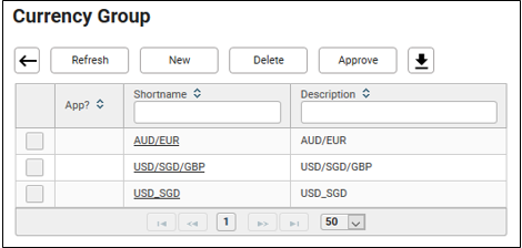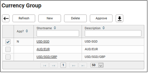 7. Approve the amended currency group by ticking the checkbox beside the short name and click Approve.