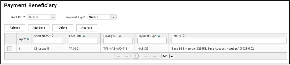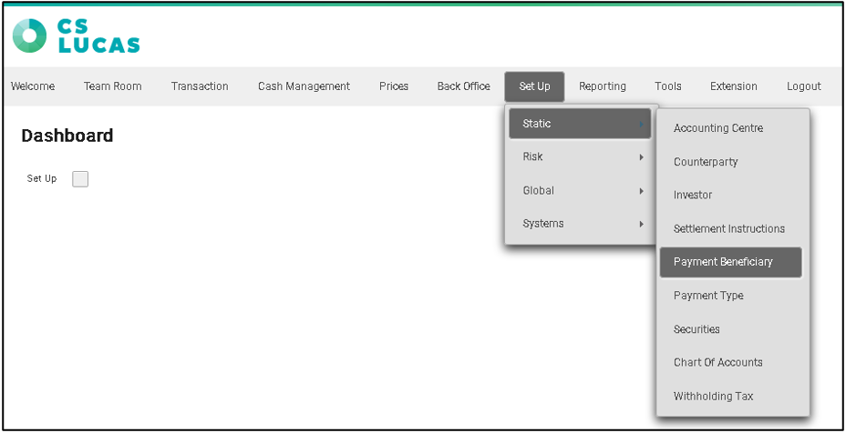 1. From the menu, select Set Up > Static > Payment Beneficiary.