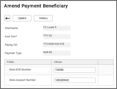 This screen allows amendment to the payment beneficiary set up in the system.