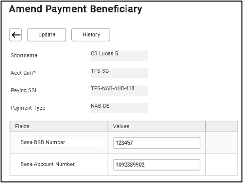 5. Amend the fields in the table accordingly. In this example, we will amend Bene BSB Number.