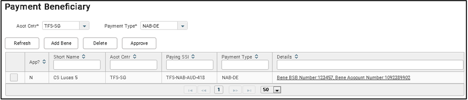 4. Click on the Details hyperlink to drill down to Amend Payment Beneficiary screen.