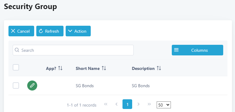 10. From the Security Group main screen, tick the checkbox beside the security group short name.