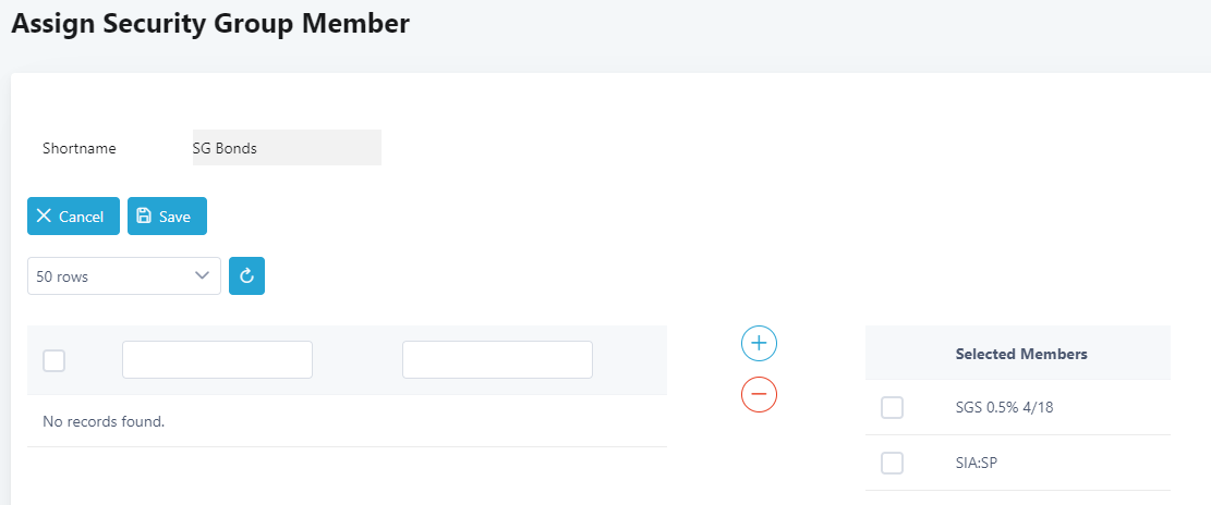 5. If adding more members, type asterisk (*) on the first field. Click Refresh Button. All the security short name will be displayed.
