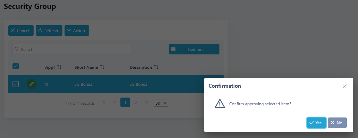 11. Click Action and Approve. A popup appears to confirm, click Yes.
