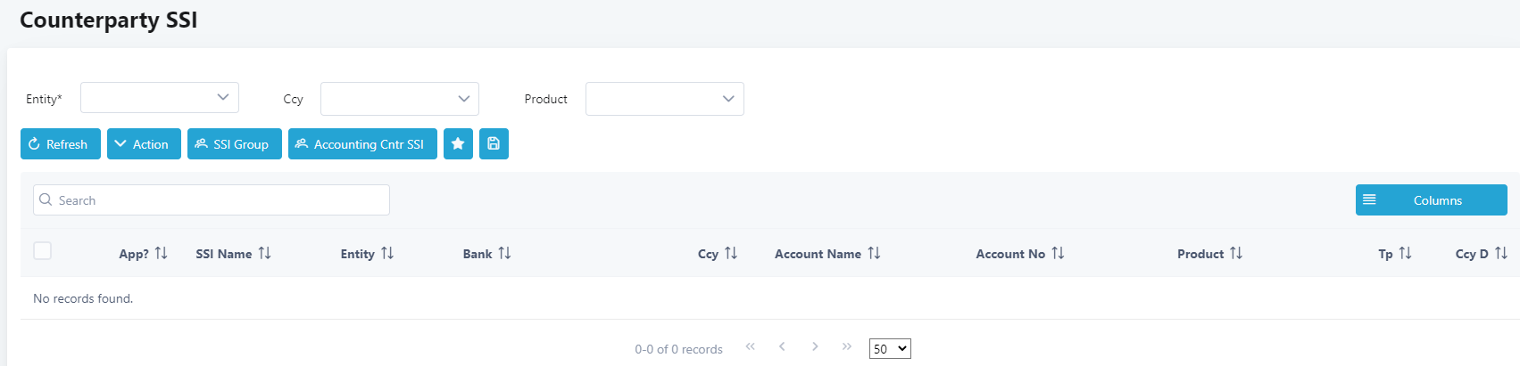 3. Click SSI Group. The Counterparty SSI Group screen displays.