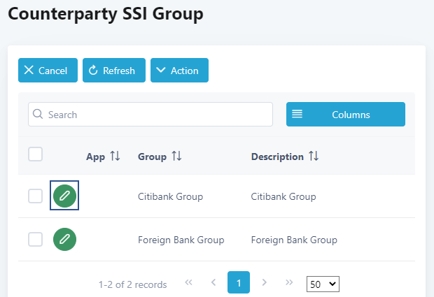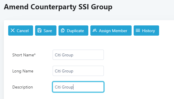 9. To amend the counterparty SSI group member assignment, click on the Edit button of the counterparty SSI group.
