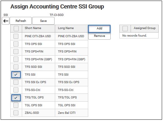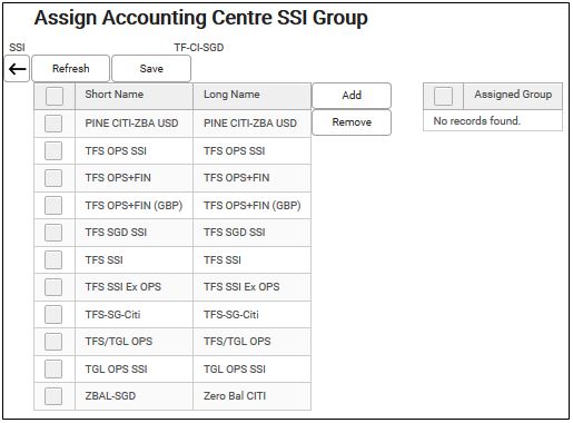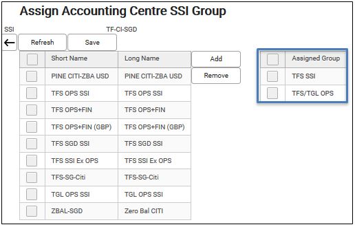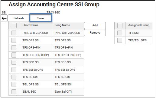 This allows user to assign one accounting centre SSI to multiple groups in a more convenient and faster way.