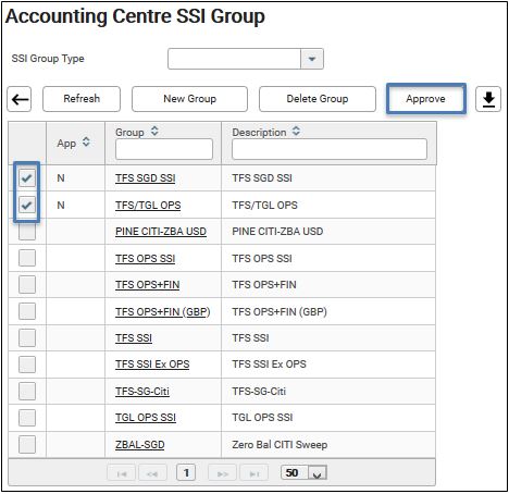 9. Tick on the checkbox of the SSI groups to approve and then click Approve.