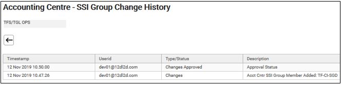10. Accounting Centre SSI groups will be approved. Changes are audit logged in SSI group Change History (Set Up > Static > Settlement Instructions > SSI Group > Click on the Group name > Amend Accounting Centre SSI Group > Click on History).