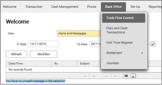 2. To authorise and verify transactions, click on Back Office > Trade Flow Control from the main menu.