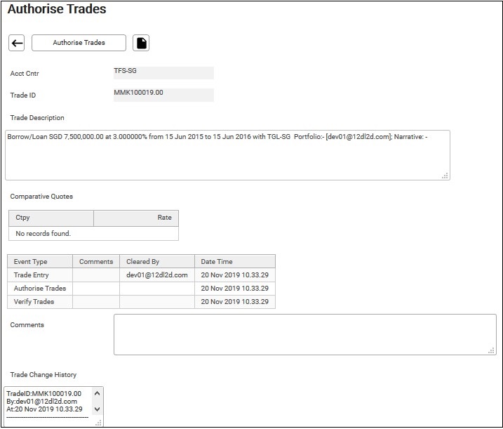 However, if you wish the trades to be verified before authorise, this can be set under User Preference setting.