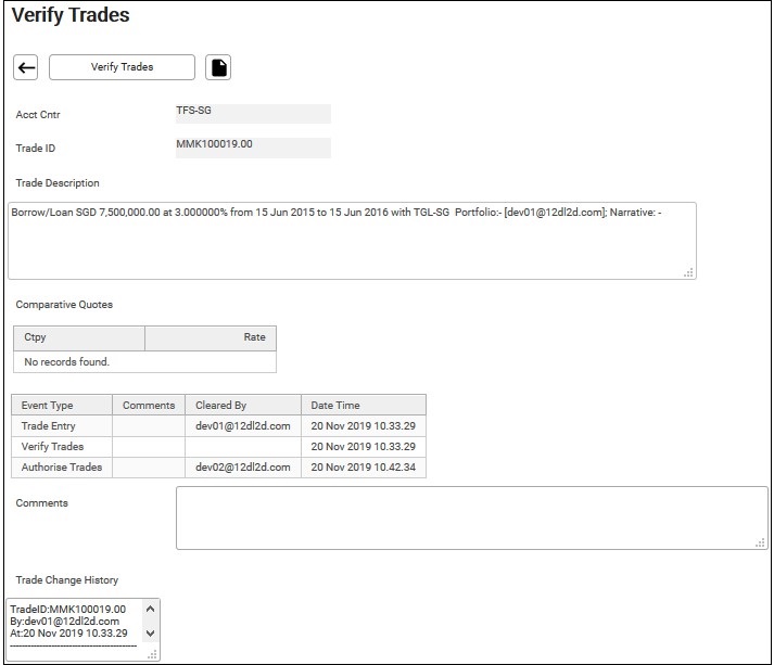 11. Enter comments in the field provided, if any. Click Verify Trades to finish.