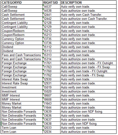 Yes. You will need to add additional authorize rights by the respective product individually on top of the authorize trades (14017) access rights. The additional authorize rights are as listed below.