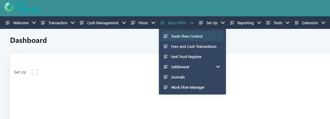 2. To authorize and verify transactions, click on Back Office > Trade Flow Control from the main menu.