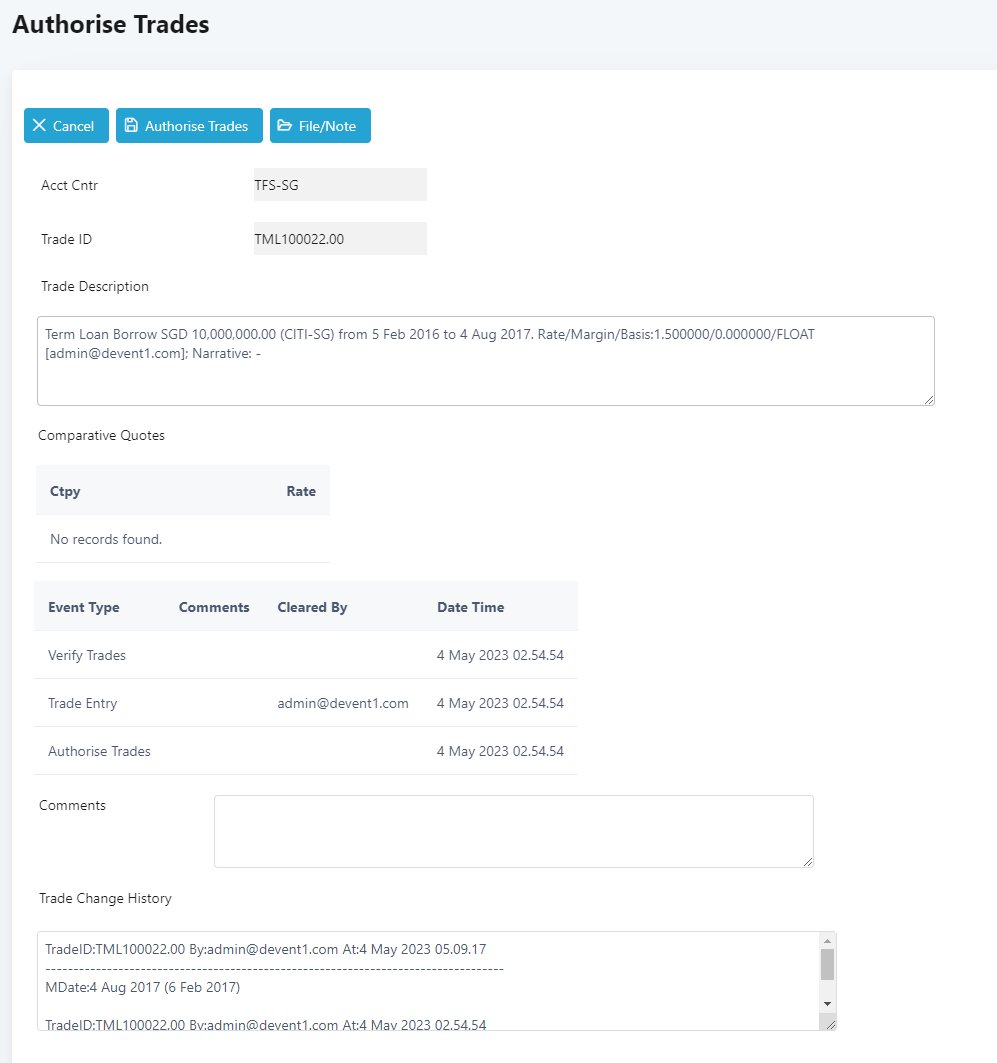 However, if you wish the trades to be verified before authorize, this can be set under User Preference setting.