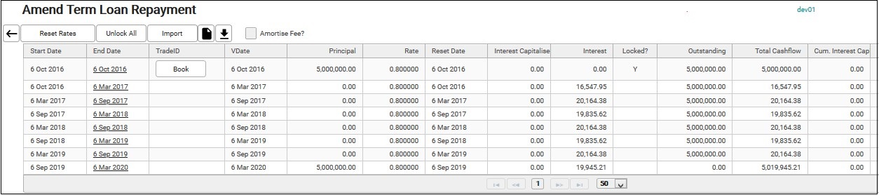 10. To view the repayment schedule from this screen, click on the Trade ID. You will be brought to the Amend Term Loan Repayment screen. You can also book the repayment item directly from this screen.