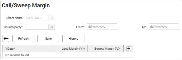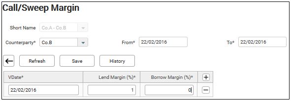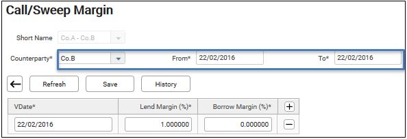 11. To view the margin rates maintained for the relationship pair, select the counterparty, key in the From Date and To Date and click Refresh.