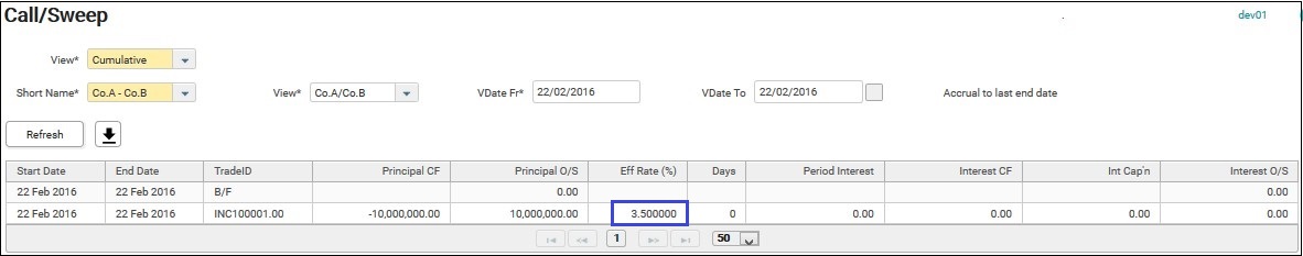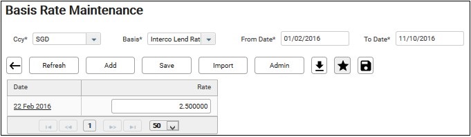 12. With the margin rates maintained, the margin rates will be added on top of the Lend Ratebasis or Borrow Ratebasis that apply to the intercompany funding transaction or call deposit account. See example below, the rate 3.500000 is derived from the Lend Ratebasis 2.500000 + Margin 1.000000.