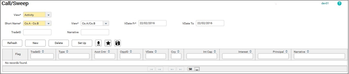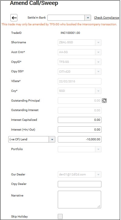 5. To view or amend the transaction, click on the TradeID from the Activity view of Call/ Sweep screen to drill down to the Amend screen. Note that the transaction can only be amended by the accounting centre/ the master sweep SSI that book the transaction.