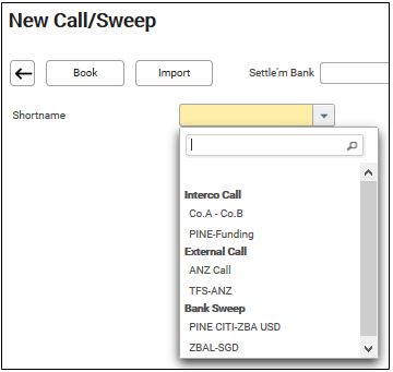 Select the Bank Sweep short name. This bank sweep set up needs to be pre-set up in the Call/ Sweep set up screen. For more details on how this is set up, see Call/ Sweep set up.
