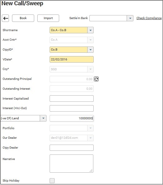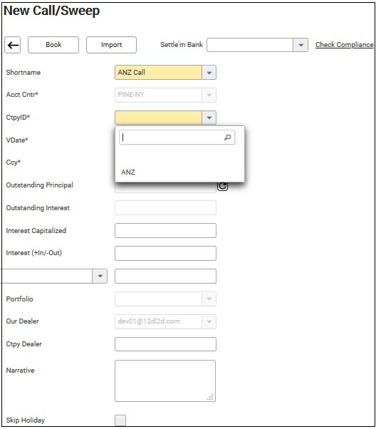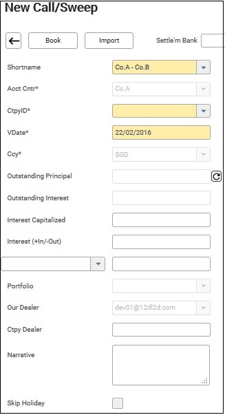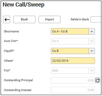 Same as the steps as (i) Interco Call above except that the drop down for Ctpy ID will contains only the external counterparties when you select External Ctpy Call short name.