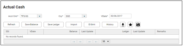 1. Select Cash Management > Actual > Cash Balance. The Actual Cash screen displays.