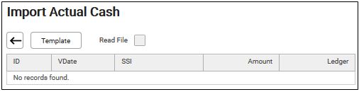 7. To start import, get the CS Lucas solution standard template by clicking on Import. The Import Actual Cash screen displays.
