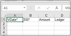 9. Open the file and enter the values required. Column headings with asterisks are mandatory. Do not leave rows empty and do not add any columns. The closing balances should be entered in the Amount column.
