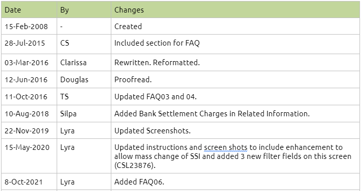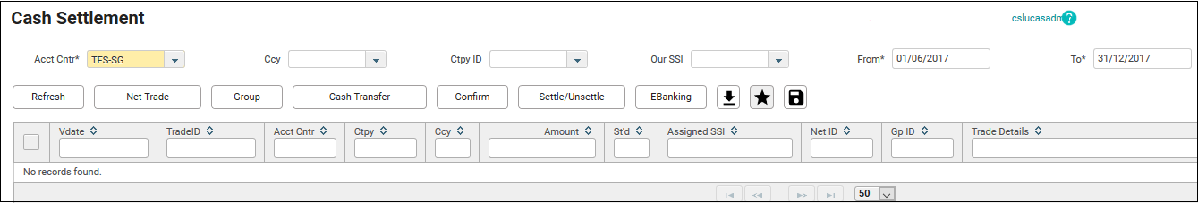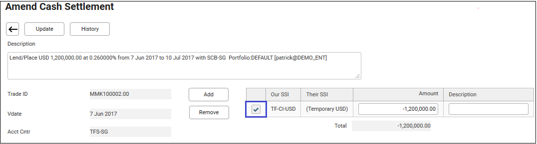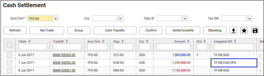 Note: Cash settlement items selected must be of the same currency as the selected SSI.