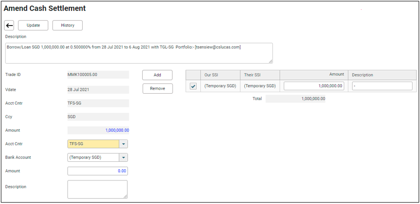 Alternatively, you can do an update/ amendment to the trade on Transaction module so that system will create the reversal journals. Then, amend the settlement instructions for the amended transaction as required. Please note that amendment/ update to the trade requires re-authorisation and re-verification.