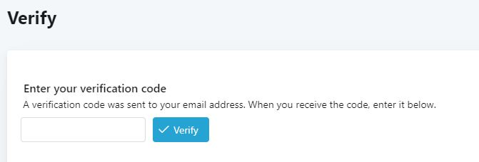 2. Next, CS Lucas will check from which device/ browser that you are logging. If the IP address and the browser are not recognized, you will be prompted to verify your identity. A verification code will be sent to your email address per in the user set up. Enter the verification code and click Verify.