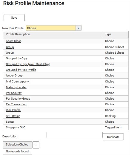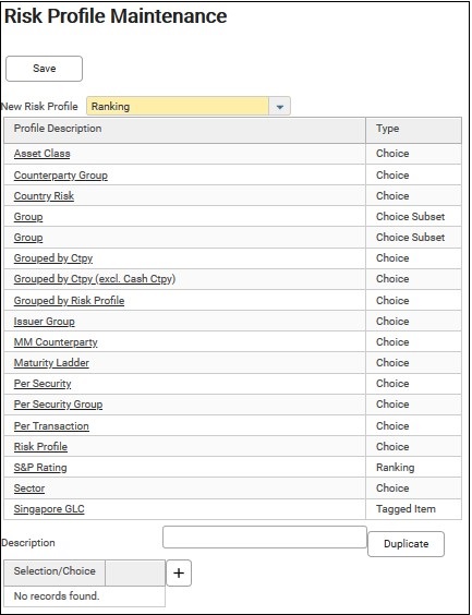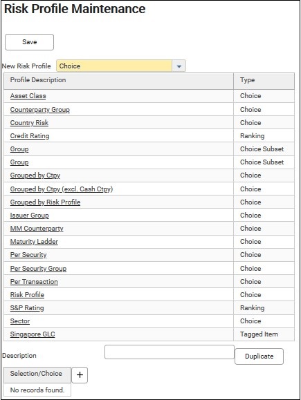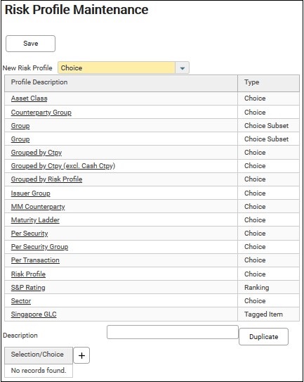 Select Counterparty Risk for Risk Profile*. The system will require additional selection for choice of this Counterparty Risk.