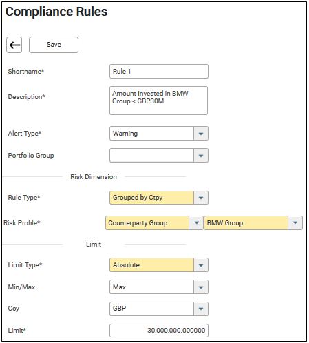 Example: Amount invested in BMW Group must be less than GBP30M.