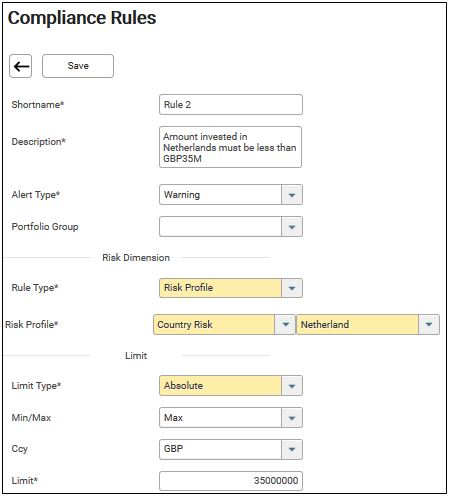User may change the risk profile in the above examples to create other rules. For example, Rule 2 can be changed to risk currency by changing the risk profile from country to currency.